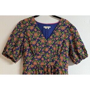 BODEN Women's Purple Floral Puff Sleeve Dress Size 8 Long Multicolor EXCELLENT!