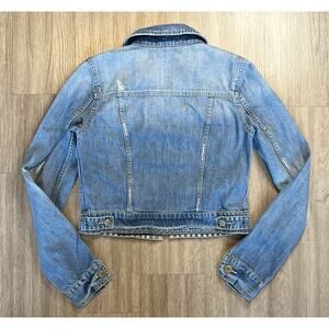 American Eagle Denim Jacket S/P – Cropped Distressed Light Wash Jean Jacket
