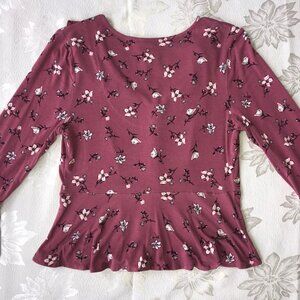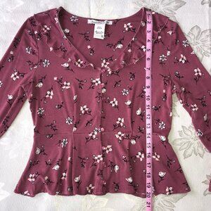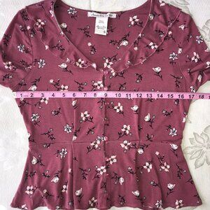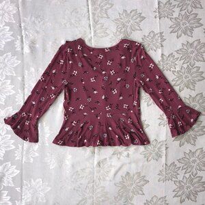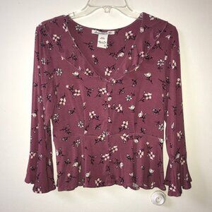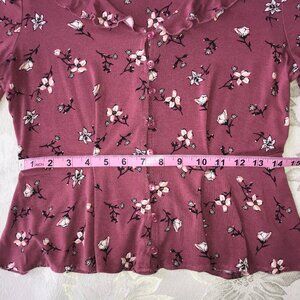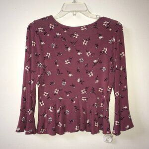 American Rag Floral Peplum Button Down Blouse Bell Sleeve Ruffle Top S
