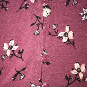 American Rag blouse is size S. Material is 96% rayon, 4% spandex. So soft and stretchy. Top has a button down front with bell sleeves and ruffle collar accent. Cute floral pattern. Top is in good condition with some light fading and pilling.