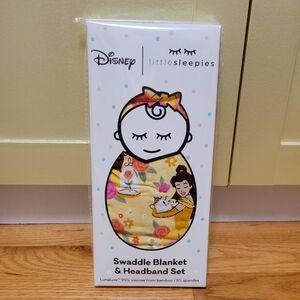 NIB Little Sleepies Disney Princess Belle Swaddle & Luxe Bow Headband Set-Bamboo