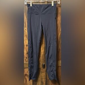 The Vuori Stride Legging is a high-rise legging that is made with performance stretch nylon. It is 7/8 length and has a 24.5" inseam. It is moisture wicking and cool to the touch. It also has UPF sun protection, a hidden back zip pocket, and side stash pockets that are big enough to fit most phones.