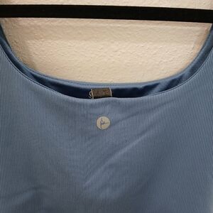 90 Degree blue workout tank top. I also used it for going out. Nice stretch to it. In great condition except the inside tag.
