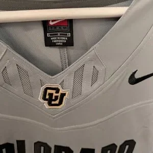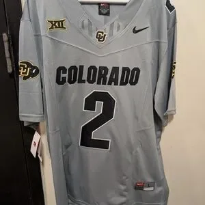 Shedeur Sanders Colorado Stylish gray jersey with bold black details. Ideal for sports fans.