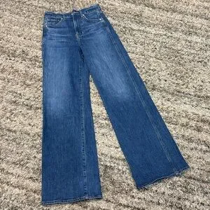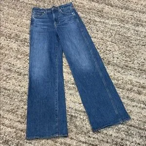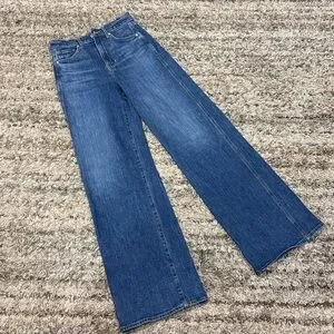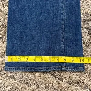 Chic wide-leg jeans in deep blue. Perfect for versatile styling. Does have a slight Spain on the back which is featured in Photo more than sure it will come out in the wash.