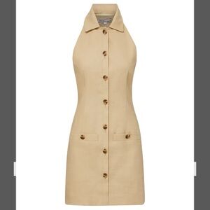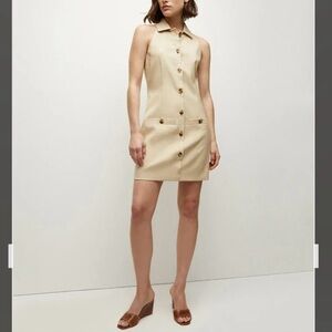 Veronica Beard Roxanne Linen Blend Button-Up Minidress in Stone Khaki Size 14