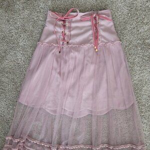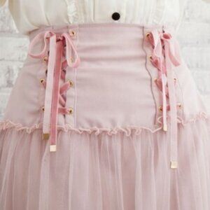Liz Lisa Pink Lace Up Sheer Overlay Scalloped Maxi Skirt