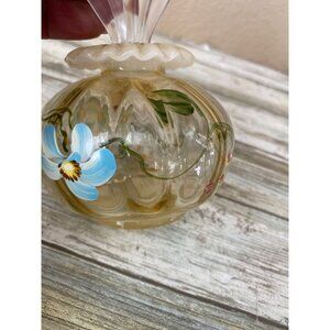 Vintage 1990s Fenton Art Glass “Blue Daisy on Silken Sand” Perfume Bottle, finished with a hand-painted design by Fenton artist Michelle Young.