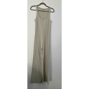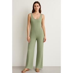 Zara Sage Green Ribbed Knit Jumpsuit – Sleeveless Wide Leg Minimalist Chic Small