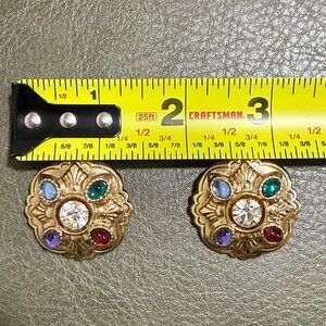 Vintage Multicolor Cabochon Gold Tone Clip On Earrings