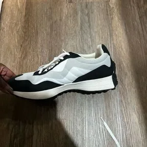 Elevate your style with these sleek black and white men's sneakers. Perfect for any casual outing.
