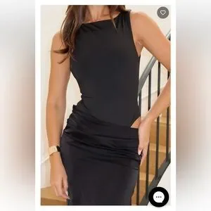 Elegant black maxi dress. Sleeveless design. Perfect for evening wear.