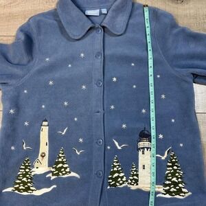 Coastal Lighthouse Winter Scene Embroidered Fleece Jacket Size L