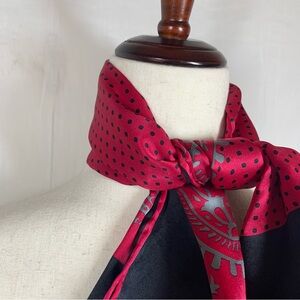 T T Top 100% Silk Square Scarf Black Red Gray Polka Dots Paisley Sateen Finish