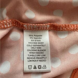 Susan Graver gorgeous orange and white polka dot blouse size 2x. Perfect spring blouse. Soft orange design with white polka dots. Shore sleeves. Great condition. Polyester and spandex blend. Liquid knit