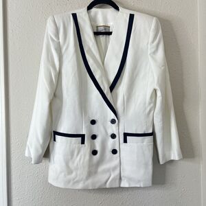 Vintage Jacqueline Ferrar Womens Blazer White Multi-Color Size 14 Viscose Blend