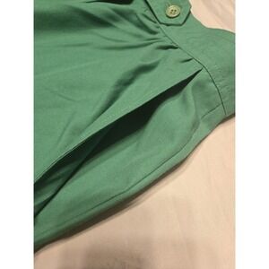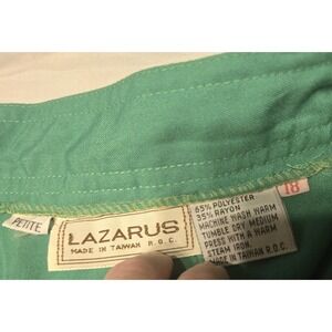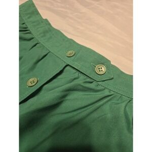 This vintage Lazarus green button A-line skirt is designed for petite women with a smaller waist size of 30 inches. The skirt features pockets, adding both functionality and style to the classic piece. The true green color is versatile and timeless, making it a wardrobe staple for any fashion-forward individual looking to add a touch of retro charm to their outfit.
