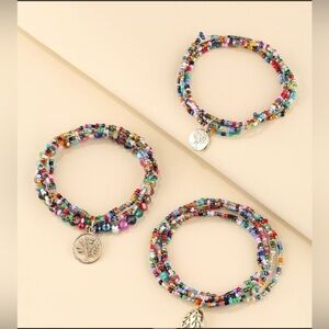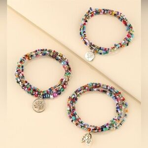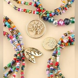 ✨NEW✨ Rainbow 🌈 Colorful Beaded Tree of life leaf layered Charm Bracelet