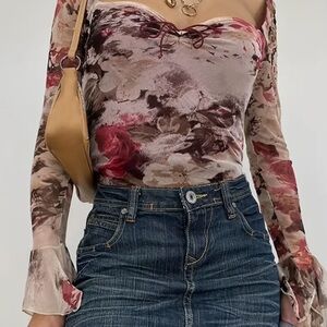 Retro Y2K Fit Flare Bell Sleeve Blouse Top