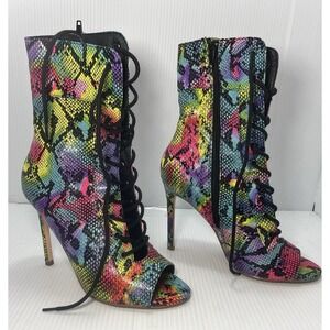 Olivia Ferguson Rainbow Snake Print Peep Toe Lace Up Stiletto Heels Size 6.5