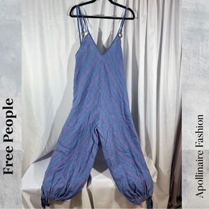 FREE PEOPLE ISLA JUMPSUIT IN BLUE PINK COMBO SIZE LARGE NEW