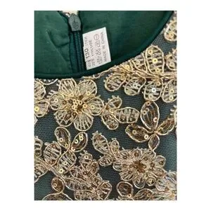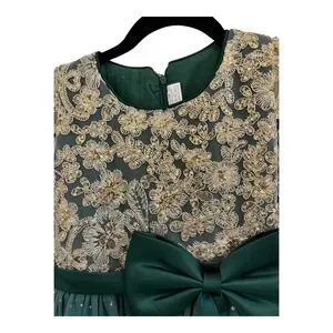 This beautiful dress is perfect for any special occasion. The forrest green color and solid pattern make it a great choice for a wedding or party. The dress has a round neckline and cap sleeves, with a back zip closure for easy wear. The dress is made of 100% polyester taffeta, making it comfortable and easy to care for with machine washable instructions. The dress features ruffle, bow, embroidered, and sequin accents, adding a touch of elegance to the fit and flare style. The ankle length and short sleeves make it a great choice for any season, whether it's winter, summer, fall, or spring. This dress is perfect for girls' size 130 and is a great addition to any wardrobe.