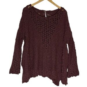 Free People Pretty Pointelle Vee Sweater in Rose Glow Sz. XS