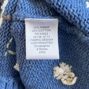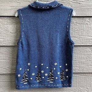 Christopher & Banks Hand Embroided Cotton Vest Women’s Small Blue Xmas Trees