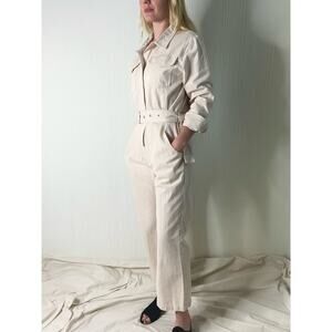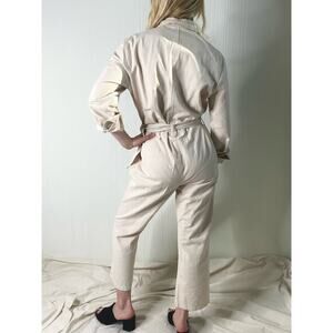 FARROW Ecru Cream Long Sleeve Twill Belted Long Sleeve Cotton Jumpsuit US SMALL