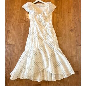 Rebecca Taylor white clip dot ruffle midi dress size 6