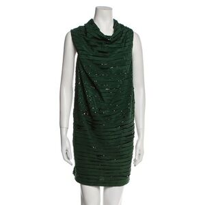 NWT SACHIN + BABI GREEN AND BLACK SEQUIN STRIPED COWL NECK MINI DRESS