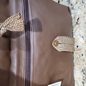 Stylish brown leather bag featuring a unique textured strap. Perfect for any occasion.