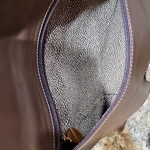 Borbonese large Clutch Brown Leather Bag with Textured Strap