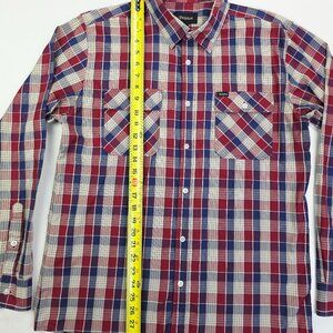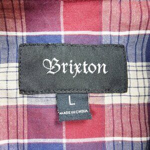 Brixton Size Large Mens Red Blue Bone Check Pocket Logo Long Sleeve Shirt