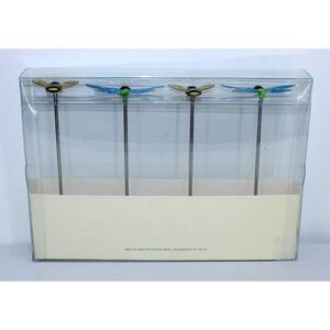 Pottery Barn Set of 4 Dragonfly Bee Garden Drink Stirrers Skewers Cocktail Party