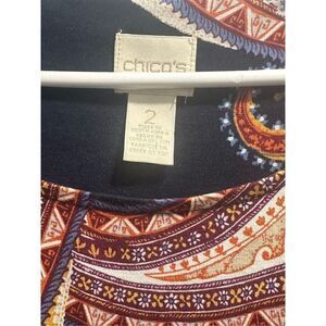 Women's Blue and Orange Paisley Print Chico's 3/4 Sleeve Blouse Size 2