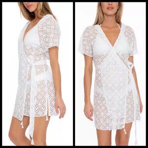 💕TRINA TURK💕 Pacheco Wrap Crochet Dress ~ Swimsuit Cover-Up White NWOT