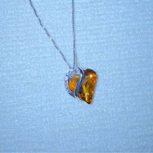 November birthstone Love Heart Pendant Necklace topaz - Infinity Amber / Brown
