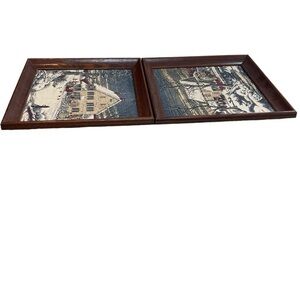 **Condition:** The linen shows signs of vintage age with slight fraying at the edges (see photos), but the prints and frames remain in excellent condition, preserving their nostalgic appeal.