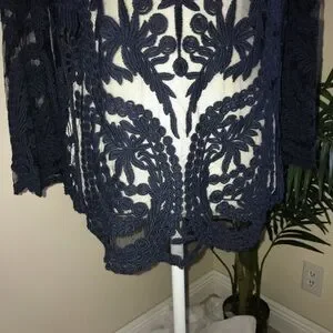 Simply gorgeous navy blue lace top with scalloped edge. Chest 40 in Length 28 In