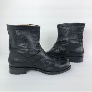 Jimmy Choo Youth Black Leather Biker Boots in textured calf leather.