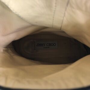 Good condition! Only has one Jimmy Choo gold tag on heel that needs to be restitched on. The other one is missing. A few dings and scratches, see all photos. Price reflects condition.