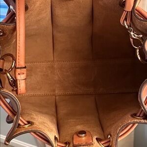 Crafted in Italy, is is made from soft calfskin. The bag is made from multiple strips of leather that are sewn together and finished with painted edges, accentuating the beauty of the waves. It is adorned with antique brass hardware and has a removable crossbody strap for optimal versatility.