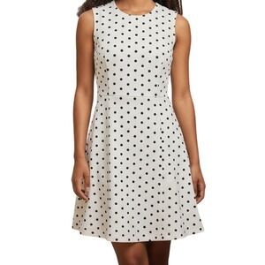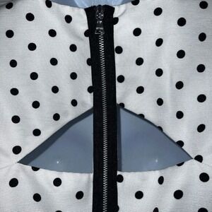 EXPRESS White With Black Polka Dot Skater Dress Full Zip Back EUC 4