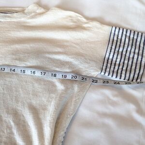 Gorgeous J.Crew short sleeve cream sweater with blue and white striped material on sleeves and back. Size XXS