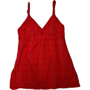 Johnny Was Women's Red Floral Eyelet Sleeveless Babydoll Tunic Top Size Small