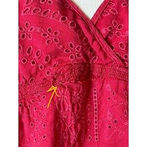 Johnny Was Tunic Top Shirt Red Sleeveless Floral Eyelet Babydoll Small DIY Read