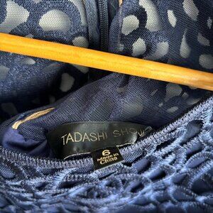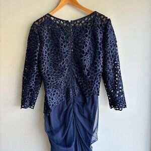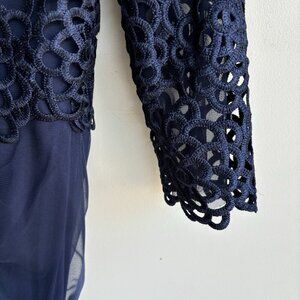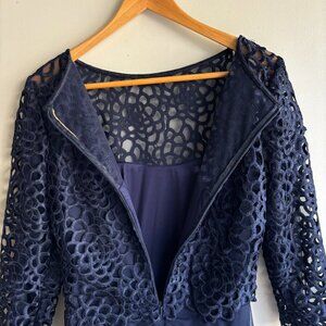 NWT Tadashi Shoji Formal Gown Size 6 Navy Blue Long Sleeve Floral Lace Bodice