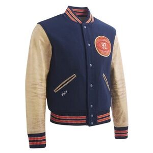Polo Ralph Lauren Navy and Tan Varsity Jacket