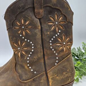 Sante Fe Western Boots Womens 11M Distressed Leather Rhinestone Cowgirl Festival